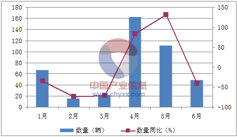 核心提示:智研咨詢數據顯示:2016年1-6月中國10座至29座的客車進口數量為426輛,同比下降7%;2016年1-6月中國10座至29座的客車進口金額為17,911千美元,同比下降8.1%。2016年1-6月中國10座至29座的客車進口量統計表如中經先略數據中心數據顯示:2016年1-6月中國10座至29座的客車進口數量為426輛,同比下降7%;2016年1-6月中國10座至29座的客車進口金額為17,911千美元,同比下降8.1%。2016年1-6月中國10座至29座的客車進口量統計表如下表所示:2016年1-6月中國10座至29座的客車進口量統計表月份數量(輛)金額(千美元)數量同比(%)金額同比(%)1月672,356-35-44.42月15849-74.1-67.63月221,067-71.4-64.94月1626,87284.171.15月1114,687131.3123.76月492,080-41.7-40數據來源:中國海關,中經先略數據中心整理2016年1-6月中國10座至29座的客車進口數量統計圖