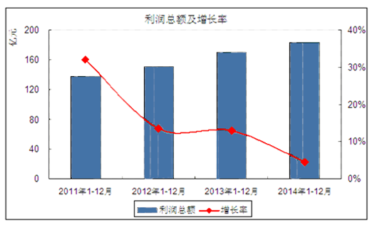 2011-2014年閥門和旋塞制造業利潤總額增長走勢