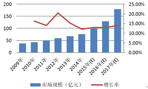 2009-2017年中國專網市場規模及預測