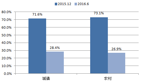 截至2016年6月,我國網民中農村網民占比26.9%,規模為1.91億;城鎮網民占比73.1%,規模為5.19億,較2015年底增加2571萬人,增幅為5.2%。