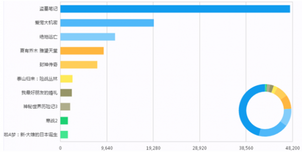 據數據顯示,內地電影市場 2016 年第 31 周(8.01-8.07)周票 房 10.60 億元,票房同比增長 46%,環比增長 27%,較 30 周票房增幅較 大。《盜墓筆記》上映 3 天收獲 4.76 億元,影片市場份額達到 44.89%, 居周票房排行榜榜首。作為該周 7 部新上映影片中唯一的一部進口片, 《愛寵大機密》以 1.94 億元的票房收入位列第二,而蟬聯兩周周票房冠 軍的《絕地逃亡》該周票房收入為 1.13 億元,落后《愛寵大機密》8052 萬元,位居第三。