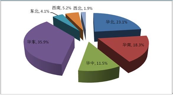 2015年我國人工耳蝸行業消費區域集中度情況