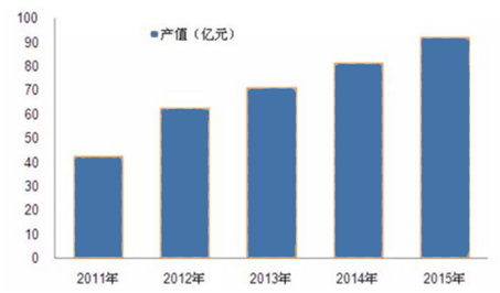 2011-2015年我國輕質碳酸鈣行業產值走勢