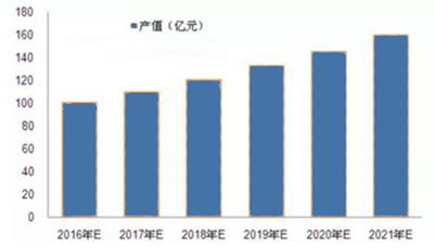 未來幾年,受輕鈣下游需求行業(橡膠、涂料、塑料、造紙等)穩中有升的發展趨勢的影響,我國輕鈣行業的產值亦將保持穩定增長趨勢。預計2016年,中國輕鈣行業產值將超過100億元;預計到2021年,我國輕鈣行業產值將達到160億元。