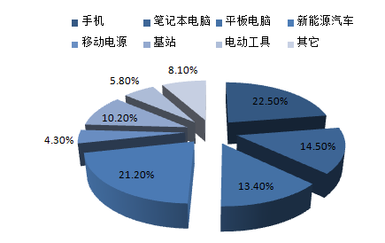 新能源汽車在政策、消費者習慣變化、資金偏好、技術改進等各個因素共同作用下,在未來五年內有望成為發展最為迅速的鋰電池應用領域,其占鋰電池應用市場份額也將逐漸上升,預測到2020年,中國新能源汽車鋰電池需求量占鋰電池總需求量的50%。