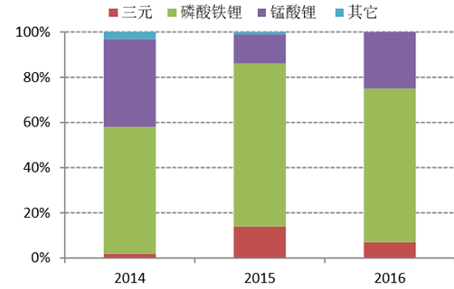 各類正極材料在電動(dòng)客車市場(chǎng)份