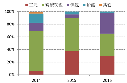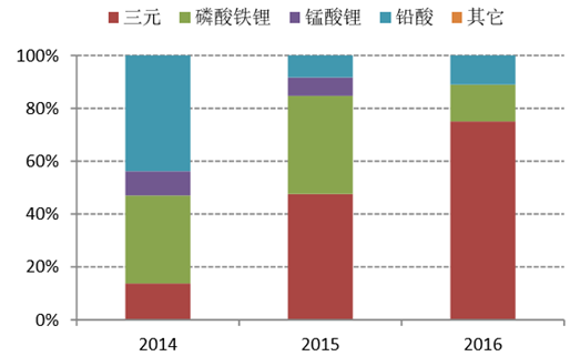 各類正極材料在電動(dòng)乘用車市場(chǎng)份額