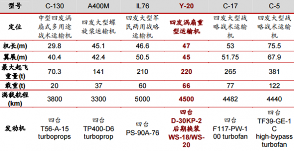 全球代表性大型軍用運輸機參數