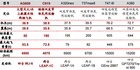 全球代表性大型民用運輸機參數