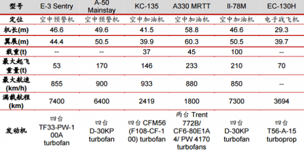 軍用大飛機:除了大型運輸機以外,還包括以大型運輸機為平臺改造的預警機、空中加 油機、轟炸機以及電子戰飛機等。