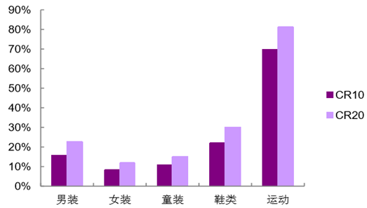 從服裝行業(yè)整體供需情況來看:需求端,行業(yè)一直保持穩(wěn)定增長;但從供給端看,近幾年發(fā)生了較大變化,部分規(guī)模較大的上市公司選擇跨界轉型以及部分中小企業(yè)被淘汰,將帶來行業(yè)競爭格局的重構,堅守主業(yè)以及依托主業(yè) 進行業(yè)務延伸布局的龍頭企業(yè)將受益于市場參與者減少帶來的市場份額再 提升。從天貓雙十一的銷售數(shù)據(jù)來看,以風格多樣、市場最為分散的女裝品類為例, 銷售額排名中根植于電商的“淘品牌”已不敵傳統(tǒng)品牌中的佼佼者,展現(xiàn)了 服裝龍頭企業(yè)品牌影響力與經(jīng)營能力的優(yōu)勢。其他細分行業(yè)更是如此,線下 品牌一旦上線,很快在雙十一排名中位居前列。