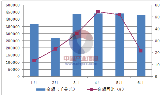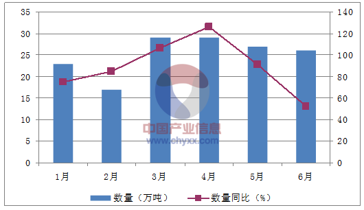 月份數(shù)量(萬噸)金額(千美元)數(shù)量同比(%)金額同比(%)1月23368,61774.813.22月17268,15384.7233月29438,683106.4364月29441,844125.754.25月27441,4279151.76月26430,28352.221.4數(shù)據(jù)來源:中國海關(guān),中經(jīng)先略數(shù)據(jù)中心整理