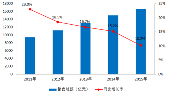 2011-2015 年藥品流通行業(yè)銷售趨勢