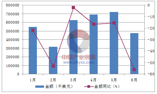 月份數量(萬噸)金額(千美元)數量同比(%)金額同比(%)1月184547,368-23.7-22.12月118316,697-49.8-53.23月239627,91211.9-2.34月280690,5272.8-16.75月294722,3092.5-15.56月187476,998-50.7-56.2數據來源:中國海關,中經先略數據中心整理