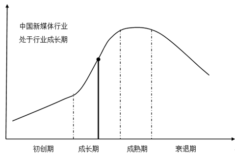 新媒體產(chǎn)品生命期大大降低。絕大多數(shù)新生媒體形態(tài)都來(lái)去匆匆。即使在短期內(nèi)形成巨大影響力的幸運(yùn)兒,如客戶端、微博和微信也絕無(wú)可能形成當(dāng)年傳統(tǒng)媒體那樣持久和壟斷的影響力。因此,新媒體的產(chǎn)品生命存活期較傳統(tǒng)媒體大大降低。新媒體行業(yè)發(fā)展周期處于: