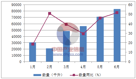 月份數(shù)量(千升)金額(千美元)數(shù)量同比(%)金額同比(%)1月30,64336,29018.318.32月20,95024,11850.857.73月48,79850,98839.343.74月56,28057,34829.525.55月70,94869,9464628.96月83,26982,16351.739.7數(shù)據(jù)來源:中國海關(guān),中經(jīng)先略數(shù)據(jù)中心整理