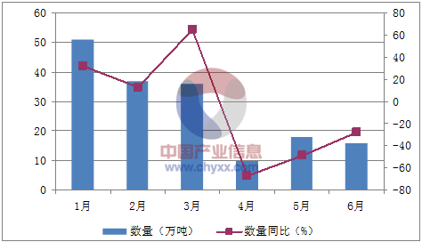 月份數量(萬噸)金額(千美元)數量同比(%)金額同比(%)1月51132,64031.8-11.72月3787,14313-30.73月3692,47964.944月1032,608-67.5-72.65月1854,797-48.5-56.56月1651,266-28-40.3數據來源:中國海關,中經先略數據中心整理