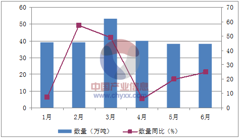 月份數量(萬噸)金額(千美元)數量同比(%)金額同比(%)1月391,854,7127.2-19.62月391,791,86257.323.73月532,547,4034920.54月401,972,1826.3-14.25月381,881,73720.1-3.96月381,805,60325-1.8數據來源:中國海關,中經先略數據中心整理