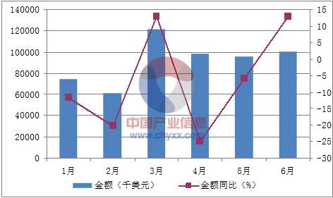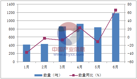 月份數量(噸)金額(千美元)數量同比(%)金額同比(%)1月41974,626-37.4-11.82月43361,270-3.3-20.23月862121,640-7.212.94月92198,32122.6-255月84095,951-12-5.96月1,180100,33665.112.9數據來源:中國海關,中經先略數據中心整理