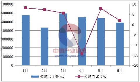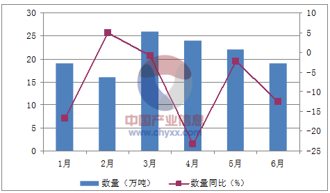 月份數量(萬噸)金額(千美元)數量同比(%)金額同比(%)1月19573,734-16.78.22月16433,7714.97.33月26593,148-0.95.64月24552,700-23.3-14.55月22542,195-2.37.96月19489,953-12.62數據來源:中國海關,中經先略數據中心整理