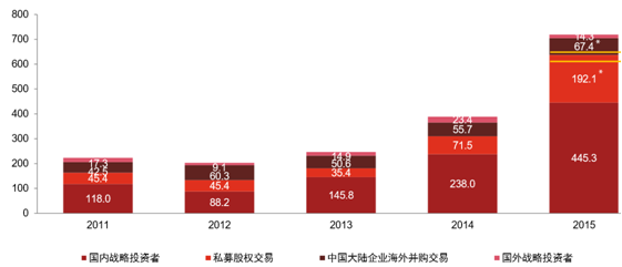 中國大陸企業海外并購交易,2011年至2015年