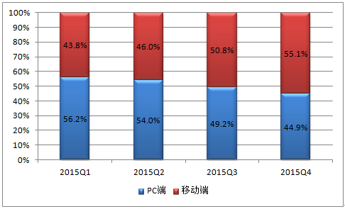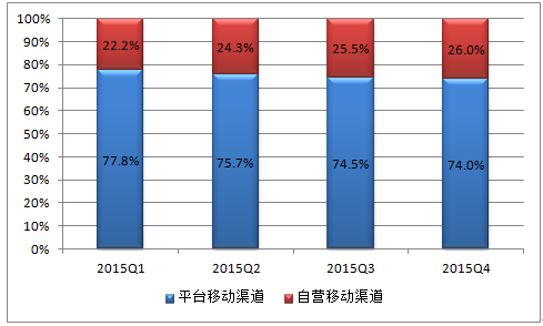 2015第4季度自營B2C企業(yè)移動(dòng)渠道交易份額