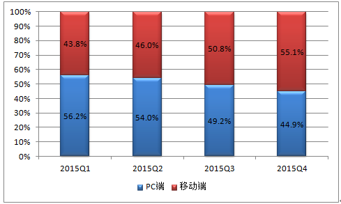 2015第4季度自營(yíng)B2C企業(yè)移動(dòng)渠道交易份額