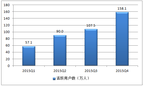 2015Q1-Q4中國(guó)醫(yī)藥電商領(lǐng)域APP活躍用戶數(shù)