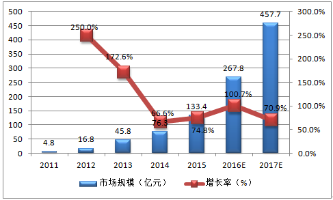 2016-2018年中國(guó)醫(yī)藥B2C市場(chǎng)交易規(guī)模預(yù)測(cè)