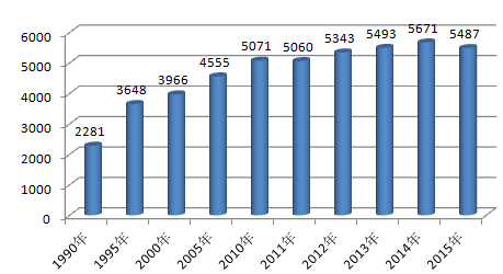 核心提示:一、2015年中國豬肉總產量同比減少2015年豬肉總產量為5487萬噸,較2014年減少3.25%。2011-2015年豬肉總產量復合增長率(CAGR)為1.63%。1990-2015年豬肉產量走勢(萬噸) 二、2015年中國豬肉產一、2015年中國豬肉總產量同比減少