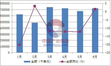 月份數量(萬立方米)金額(千美元)數量同比(%)金額同比(%)1月366623,654-4.3-20.42月292486,74420.43.33月444738,958-0.4-11.84月444721,3321.9-12.15月424676,5210.6-12.26月422720,2899.31.5數據來源:中國海關,中經先略數據中心整理