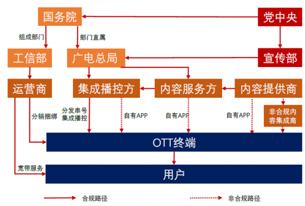 二者的競品關系體現在功能的相似性。智能電視自2013年以來呈爆發式增長,本身自帶了開放式操作系統,用戶在欣賞普通電視內容的同時,可自行安裝和卸載各類應用軟件,持續對功能進行擴充和升級;也就是說智能電視相當于在傳統電視中內置了OTT盒子,從新購進的角度來看智能電視對于OTT盒子具有替代作用。然而從持續更新的角度來看,電視作為耐用消費品,價格相對較高,更新周期在5到10年之間,而電視系統中的應用更新周期較短。隨著應用的不斷更新,對智能電視的系統要求也就更高,而更新周期較長的智能電視在長期使用后,顯然需要面對系統落后的問題。OTT盒子價格僅為幾百元,比較廉價,更換方便,能夠滿足日益提升的用戶需求,因此從更新的角度來說,OTT盒子又可以成為智能電視的補充外設。