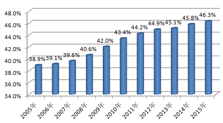 2015年,中國制藥工業百強集中度為46.3%,比2005年提升了7.4個百分點,比2014年提升了0.5個百分點。雖然這與“十二五”規劃對醫藥工業百強要達到50%的目標仍存在一定差距,但隨著產業整合的加速,特別是仿制藥一致性評價與兩票制帶動行業大洗牌,企業并購重組力度加強,相信制藥工業百強集中度在2016年將有進一步的提高。
