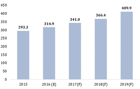 2015-2019年全球仿制藥市場規模(十億美元)