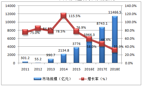 2011-2018年中國移動互聯網市場規模預測