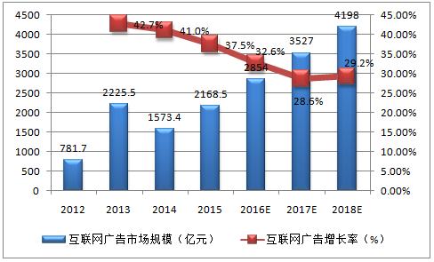 2012-2018年中國互聯網廣告市場規模預測