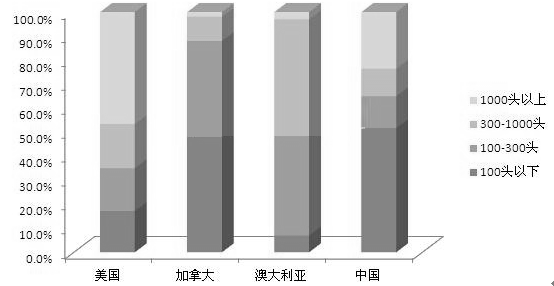 2015年中國奶牛場(戶)均存欄奶牛43頭,同比增加17頭,增幅65.4%;100頭以上規模養殖比例達到48.3%,同比提高3.1個百分點,比2008年提高28.8個百分點。與美國、加拿大、澳大利亞等奶業發達國家相比,中國100頭以下奶牛存欄比重仍偏高。