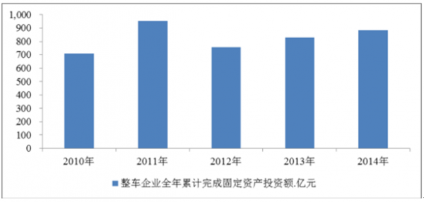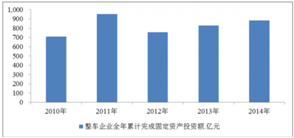 整車企業 2010 年-2014 年累計完成固定資產投資額情況