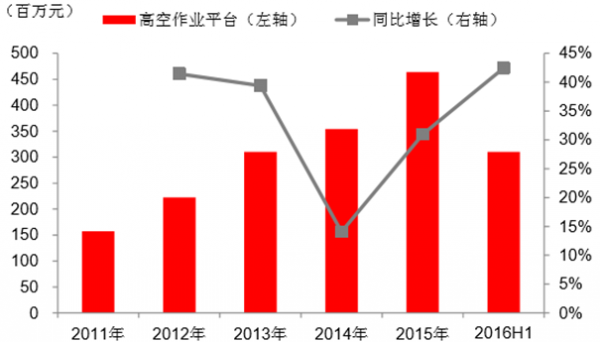 “十三五”期間我國高空作業平臺年均復合增速有望達到 40%