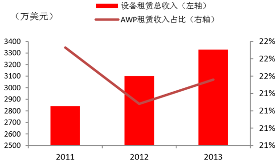 美國高空作業平臺占設備租賃公司收入 21%左右