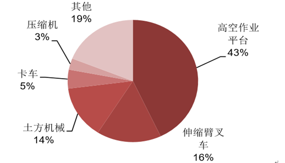 美國高空作業平臺租賃滲透率非常高, 租賃收入占機械設備租賃市場的 21%左右,歐洲市場占比為 9%左右。而在中國的工程機械租賃市 場中,仍然以挖掘機、裝載機、起重機為主,高空作業平臺的租賃數據尚不被納入統計。