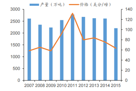 天然纖維市場空間受限于可種植面積及行業盈利能力下降。目前以棉花為代表 的天然纖維仍然占全部纖維需求的約30%,但其未來增長空間不容樂觀。首先,棉 花等天然纖維的產量受制于可耕種面積,而近幾年來全球和中國棉花種植面積不斷 縮減,對棉花產量造成了負面影響。其次,從2012年開始棉花價格整體不斷下跌, 行業整體盈利性變差,抑制了生產者的積極性,對供給造成負面影響。