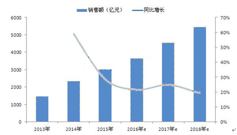 2016年上半年,我國B2C家電網(wǎng)購市場(含移動終端)規(guī)模達1848億元,同比增長35%。其中,大家電528億元(平板電視217億元、空調152億元、冰箱90億元、洗衣機69億元),同比增長47%;其他小家電類產品(包括兩凈、廚衛(wèi)電器及其他小家電類產品)約310億元,同比增23%;手機、平板電腦等移動終端產品約1010億元,同比增35%。預計2016年中國線上市場規(guī)模將達3650億元,而到2020年國內線上家電線上市場規(guī)模將達5450億元。