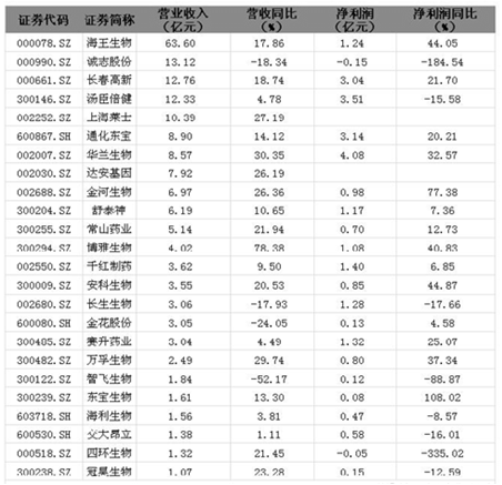 截至8月24日,生物醫藥行業(所屬中信行業名稱)已有24家上市公司發布了2016年半年度報告或業績快報。數據顯示,2016年上半年營業收入排名前5的公司分別為:海王生物、誠志股份、長春高新、湯臣倍健、上海萊士。