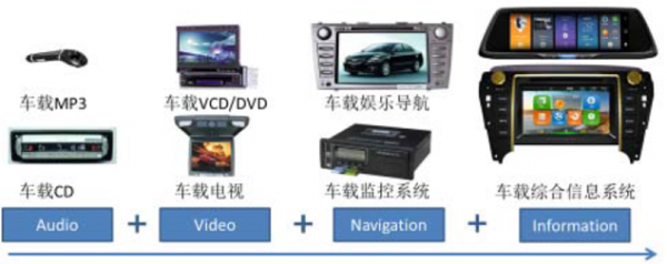 在汽車電子產業和信息技術不斷發展的推動下,車載電子產品正呈現高度集成化的發展態勢。產品從早期的車載收音機、MP3 和CD 等音頻設備和車載VCD/DVD、電視等音視頻設備,不斷演化到車載娛樂導航系統及車載監控系統。而在車載信息服務蓄勢待發的背景下,車載綜合信息系統將成為未來幾年的發展方向,車載綜合信息系統將集成娛樂導航、監控及駕駛安全輔助、信息通信、移動互聯網應用服務等多種車載電子功能,并將廣泛應用在乘用車、商用車領域的各種車型。