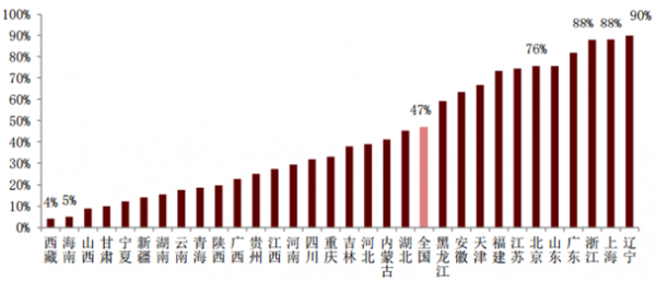 我國各地區(qū)火化率差距很大,東部沿海地區(qū)明顯高于西部內(nèi)陸地區(qū)