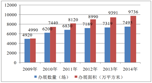 2009-2014 年我國辦展數量和面積統計