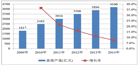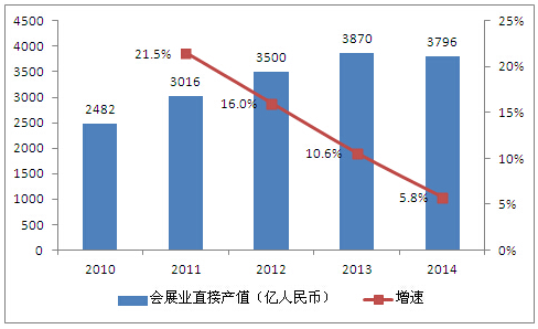 2010-2014年中國會展業直接產值及增速