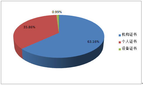 證書類型持有量(張)本月新增數(shù)量(張)環(huán)比增長率機構(gòu)證書36,386,3133,399,54810.31%個人證書300,673,5941,929,9120.65%設(shè)備證書3,034,29253,0771.78%合計340,094,1995,382,5371.61%2016年4月份電子認證服務(wù)業(yè)個人證書持有量最多,占比63.16%;其次為機構(gòu)證書,占比35.86%;設(shè)備證書持有量最少,占比0.99%。