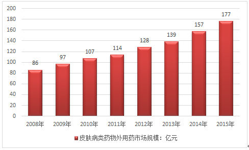 2016年中國皮膚外用藥市場的規模